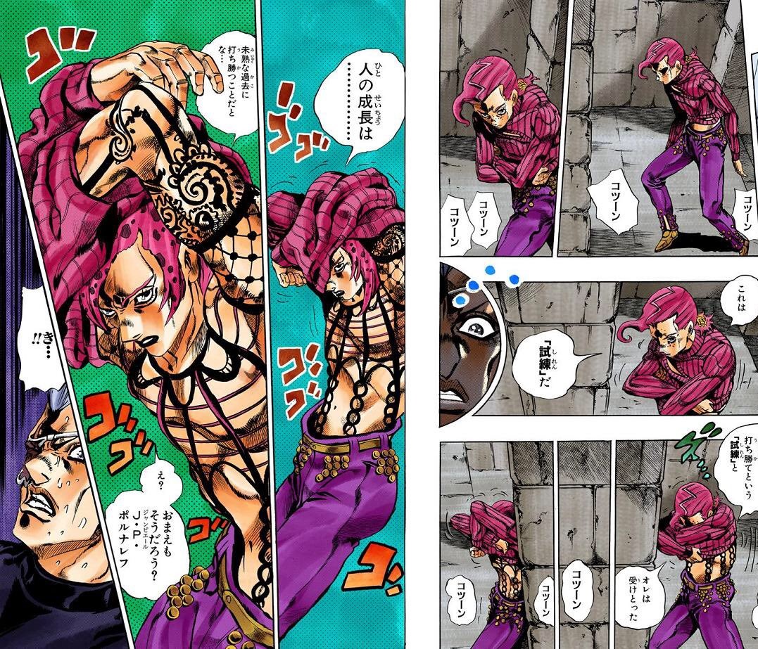 이후 늙은 보스(디아볼로)가 젊은 새 보스(죠르노 죠바나)로 교체된다는 점까지... 정말 똑같다.
