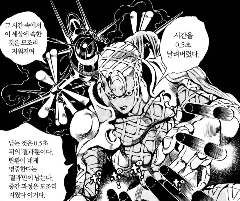 죠죠에서는 결과가 아닌 과정도 중요하다는 것을 끊임없이 보여주는데, 이는 지금까지 살아오며 과거에 차곡차곡 쌓아온 경험과 선택에도 적용되는 말이라고 생각함.